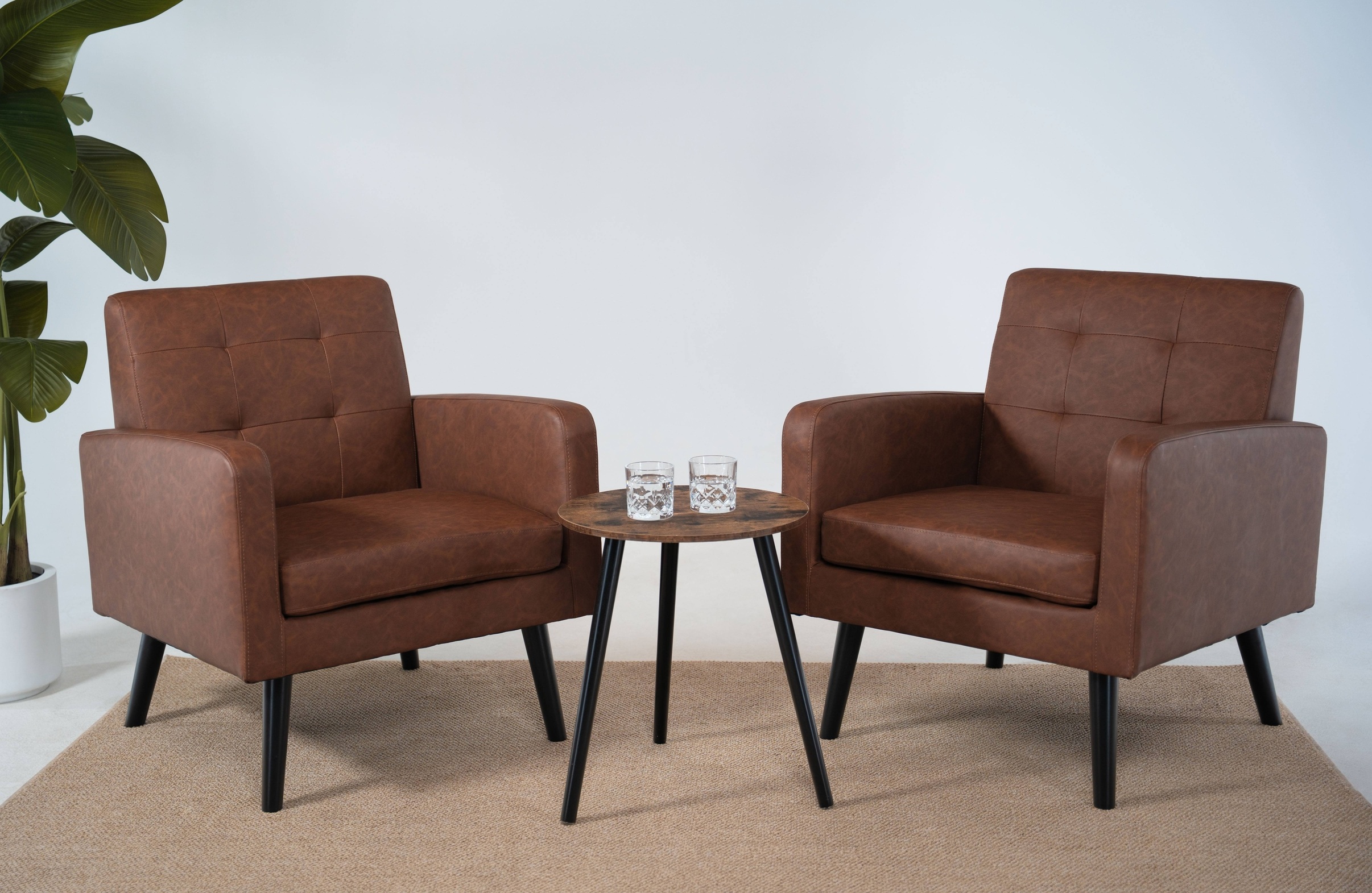 Cleanes Interview-Setup oder Loft-Lounge mit Chesterfields.